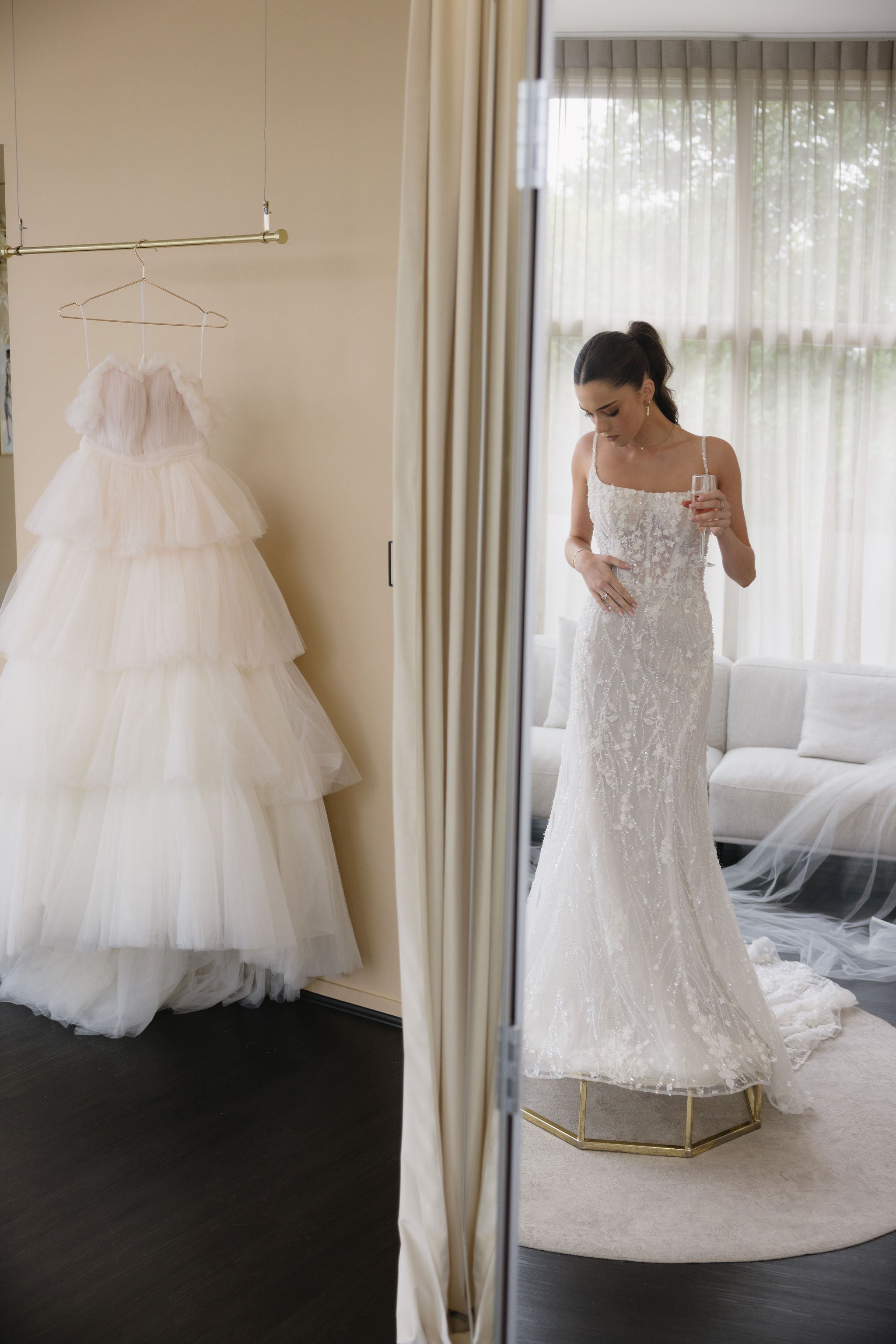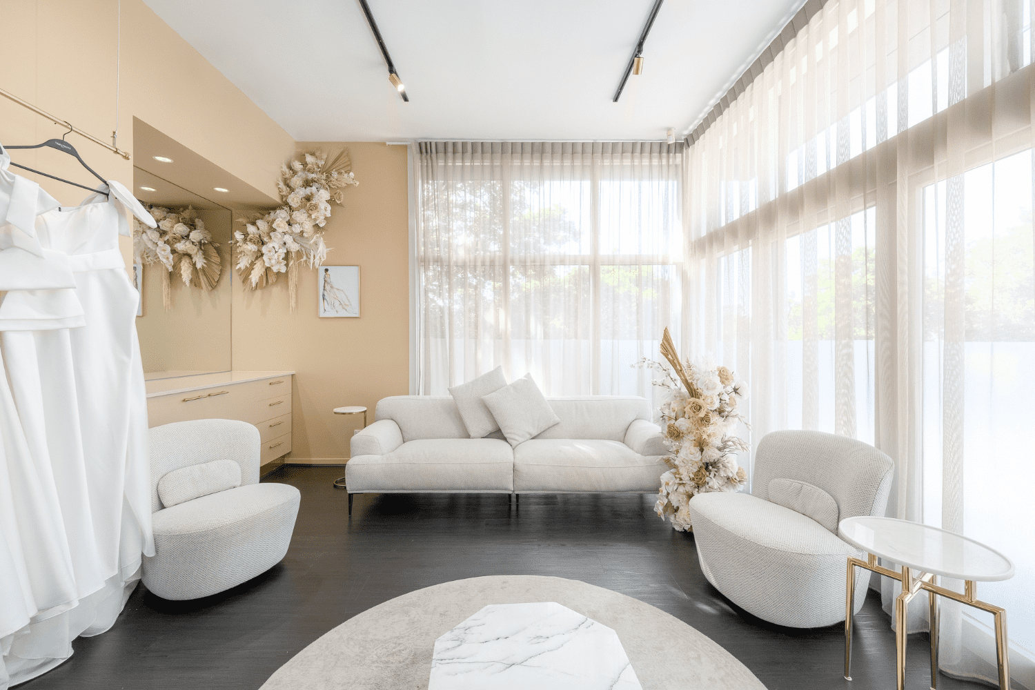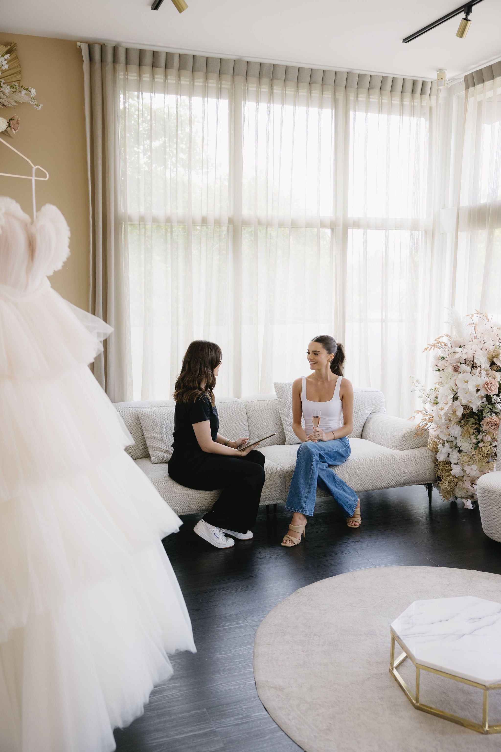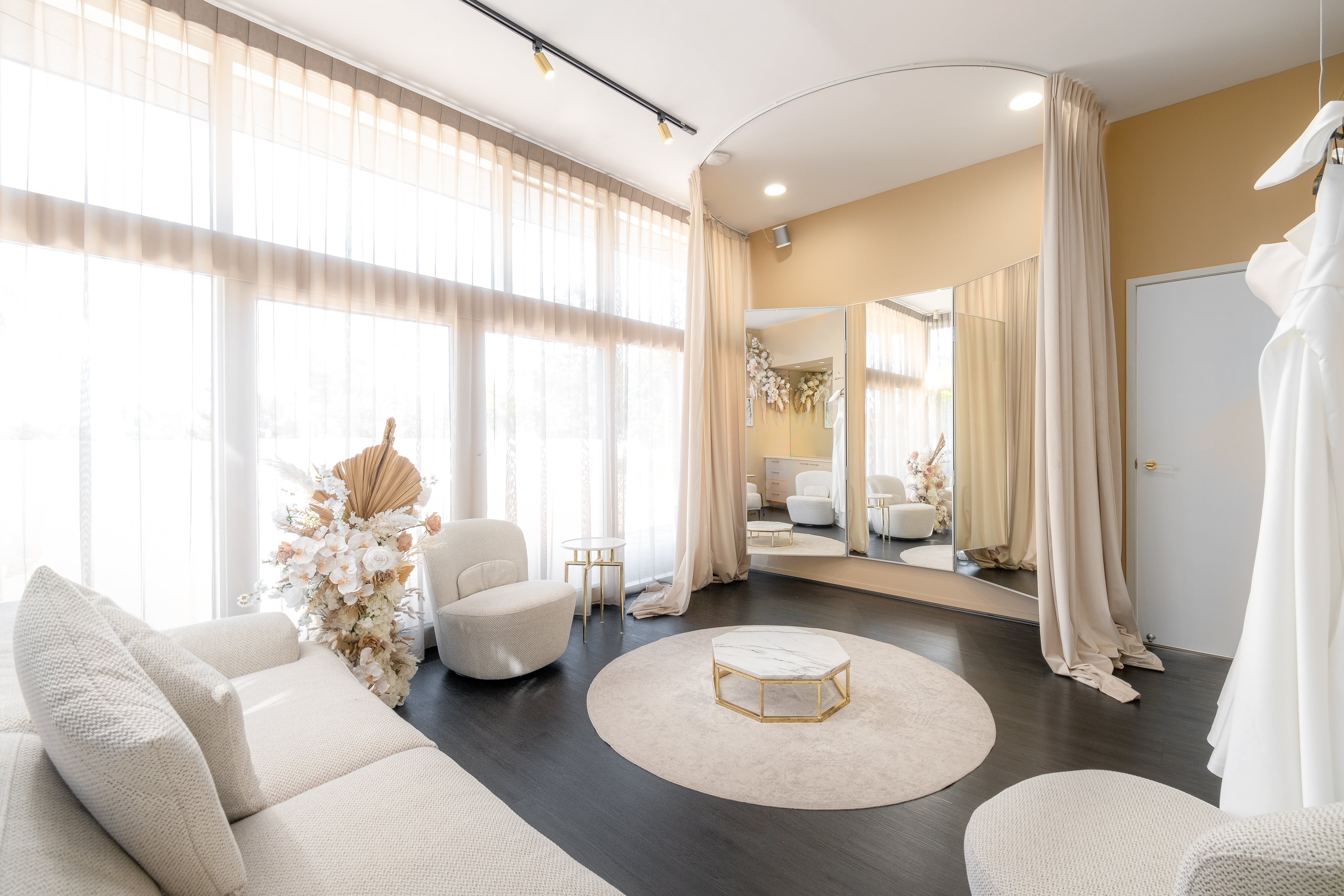 Start your dream bridal appointment when you walk through our iconic pink doors, to be invited to relax in style in our newly renovated private luxury suite. Flooded with gorgeous natural light, this space is located on the boutique’s upper level. You will have direct access to our entire collection, as well as our extensive range of jewellery and accessories – leaving you and your guests spoilt for choice! This is perfect for brides who prefer a more intimate and private experience; creating a special memory with their bride tribe.